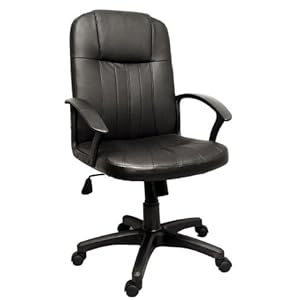 You will feel like the CEO in this fabulous, executive chair. This chair has everything! It swivels in a complete 360 degree circle. It is equipped with a pneumatic gas lift, so you can raise and lower the chair with a simple pull of a lever. It tilts back, but also has a tilt lock, so you can keep the chair upright if you like. It also has a tilt tension control, so you can make the tilt as stiff or flexible as you like. The chair is mounted on a "5 star" set of rolling casters. The heavy-duty double wheels are extra sturdy, and hooded for your safety. Some assembly is required. In addition to a great range of adjustment, this chair was ergonomically crafted to keep you comfortable in an office setting. The chair features extra padding in the seat to support the weight of your thighs. Seating is constructed of duraskin PVC for extra strength to resist tears if you back up into a cabinet or corner. The molded armrests are specifically angled to allow the most comfortable position when typing at a computer -- very few office chairs feature these angled armrests.