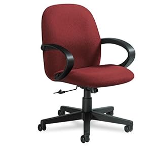 Sculptured seat and back cushions provide lateral and lumbar support. Waterfall seat edge promotes better leg circulation. Impact- and scuff-resistant molded arms, with curved tops, enhance forearm comfort. Seat/Back Color(s): Burgundy; Features & Functions: 360� Swivel; Pneumatic Seat Height Adjustment; Tilt; Tilt Lock; Tilt Tension; Arms Included: Yes; Recommended Applications: Executive & Management; Task, Multi-Task & Task Intensive.