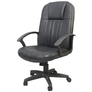 You will feel like the CEO in this fabulous executive chair. This chair has everything! It swivels in a complete 360 degree circle. It is equipped with a pneumatic gas lift, so you can raise and lower the chair with a simple pull of a lever. It tilts back, but also has a tilt lock, so you can keep the chair upright if you like. It also has a tilt tension control, so you can make the tilt as stiff or flexible as you like. The chair is mounted on a "5 star" set of rolling casters. The heavy-duty double wheels are extra sturdy, and hooded for your safety. In addition to a great range of adjustment, this chair was ergonomically crafted to keep you comfortable in an office setting. The chair features extra padding in the seat to support the weight of your thighs. Seating is constructed of duraskin PVC for extra strength to resist tears if you back up into a cabinet or corner. The seat size is 19 x 20 inches. The back is 26 x 20 inches. The seat adjusts from 16.5 inches to 21 inches high. Some assembly is required.